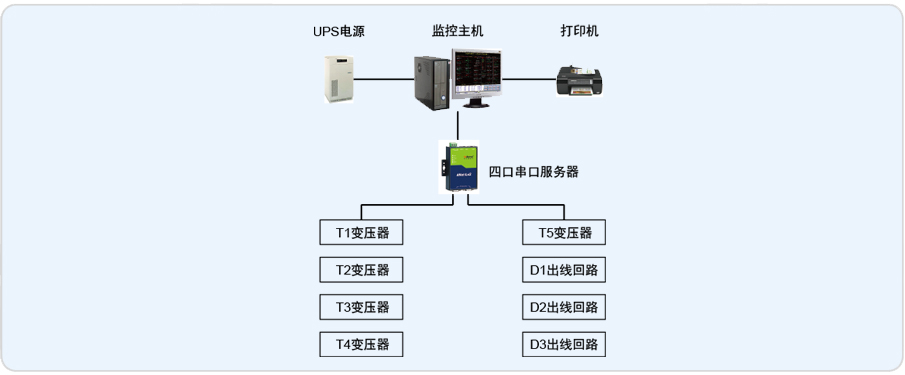 本項目為武漢愛機汽車配件有限公司變電所改造項目。根據(jù)配電系統(tǒng)管理的要求,需要對武漢愛機汽車配件有限公司3個變電所內的8個低壓配出線進行電力監(jiān)控,以保證用電回路的安全、可靠和高效的運行。監(jiān)測范圍具體為T1、T2、T3、T4、T5、D1、D2和D3共8個變壓器的進線柜側儀表進行遠程實時監(jiān)控和電能管理。該系統(tǒng)總計有8只儀表,分2條總線,都是直接通過屏蔽雙絞線走管道拉至值班室連接到串口服務器上,實現(xiàn)總線上儀表與監(jiān)控主機的數(shù)據(jù)連通。