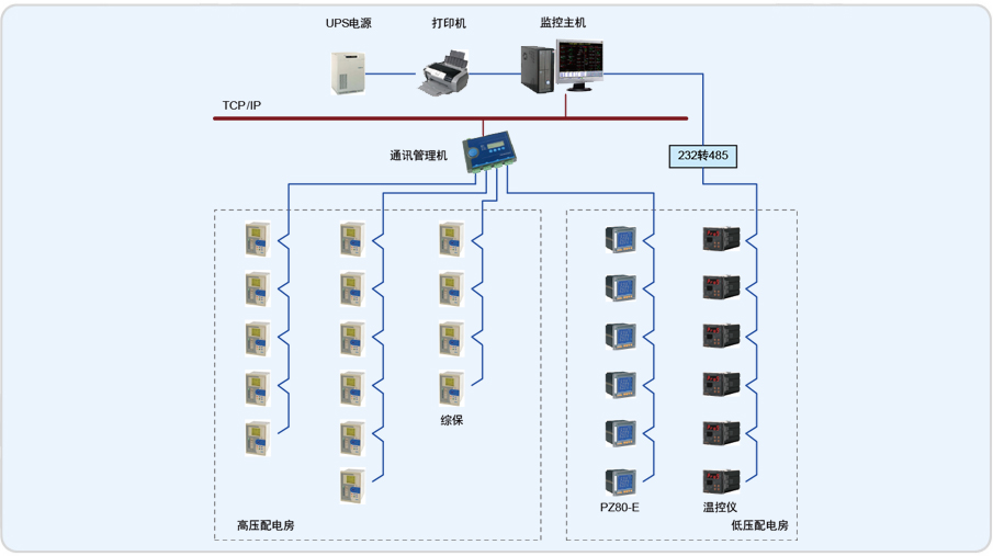 該項(xiàng)目是一個(gè)新建廠區(qū)的配電系統(tǒng),包含35KV變壓器2臺(tái),10KV變壓器3 臺(tái),項(xiàng)目中監(jiān)控范圍為35KV線路微機(jī)保護(hù)裝置2臺(tái),變壓器溫控儀8臺(tái),10KV微機(jī)保護(hù)裝置12臺(tái),安科瑞智能儀表8臺(tái),本套系統(tǒng)主要強(qiáng)調(diào)實(shí)時(shí)數(shù)據(jù)的監(jiān)測(cè)、控制,主要針對(duì)整個(gè)配電系統(tǒng)可靠性進(jìn)行全程的智能化監(jiān)控,數(shù)據(jù)分析,投、斷,以及對(duì)各回路所用電能進(jìn)行統(tǒng)計(jì)。